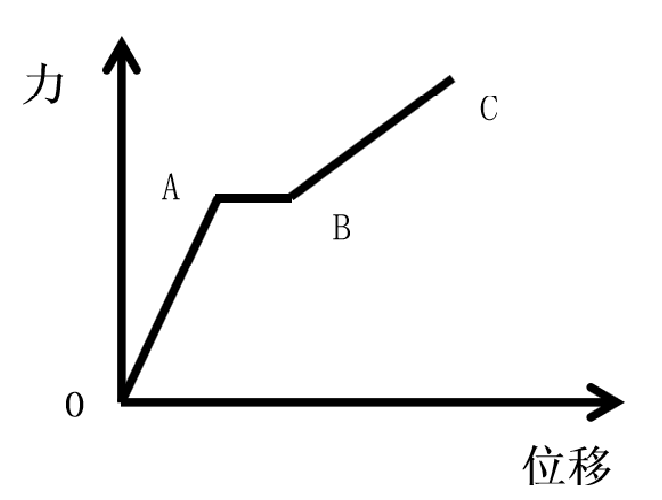 從薄膜拉伸試驗的大量實驗結果中,我們可以總結得出以下結論,在拉伸試驗初期,薄膜表現出一定程度的彈性,在下圖中,O-A段稱為瞬時彈性變形,在該階段,拉力的大小與被測材料拉伸程度之間的關系表現為正相關的增大,這一時間段拉伸停止后材料可以基本還原為原來的形態。隨著拉伸位移的不斷增加,圖中A-B段拉力變化在一個較小的范圍內波動,這一現象表示被檢測材料已經開始宏觀頸縮變形,這一階段材料將會失去原來的功能。隨著拉伸位移逐漸增大,薄膜試樣開始出現微型孔洞并且進一步變現為應力集中,該階段拉伸位移和拉力又呈現出線性關系,在圖中表現為B-C段,薄膜發生大變形直到宏觀拉斷。